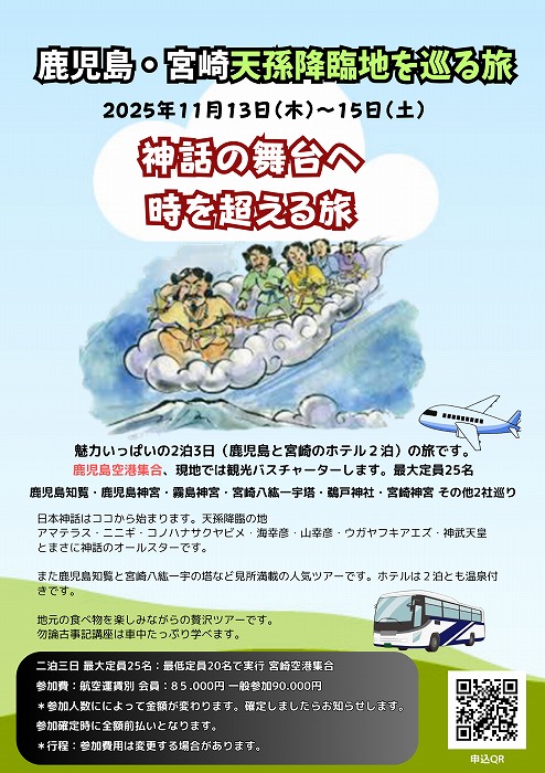 二泊三日 最大定員25名:最低定員20名で実行 宮崎空港集合